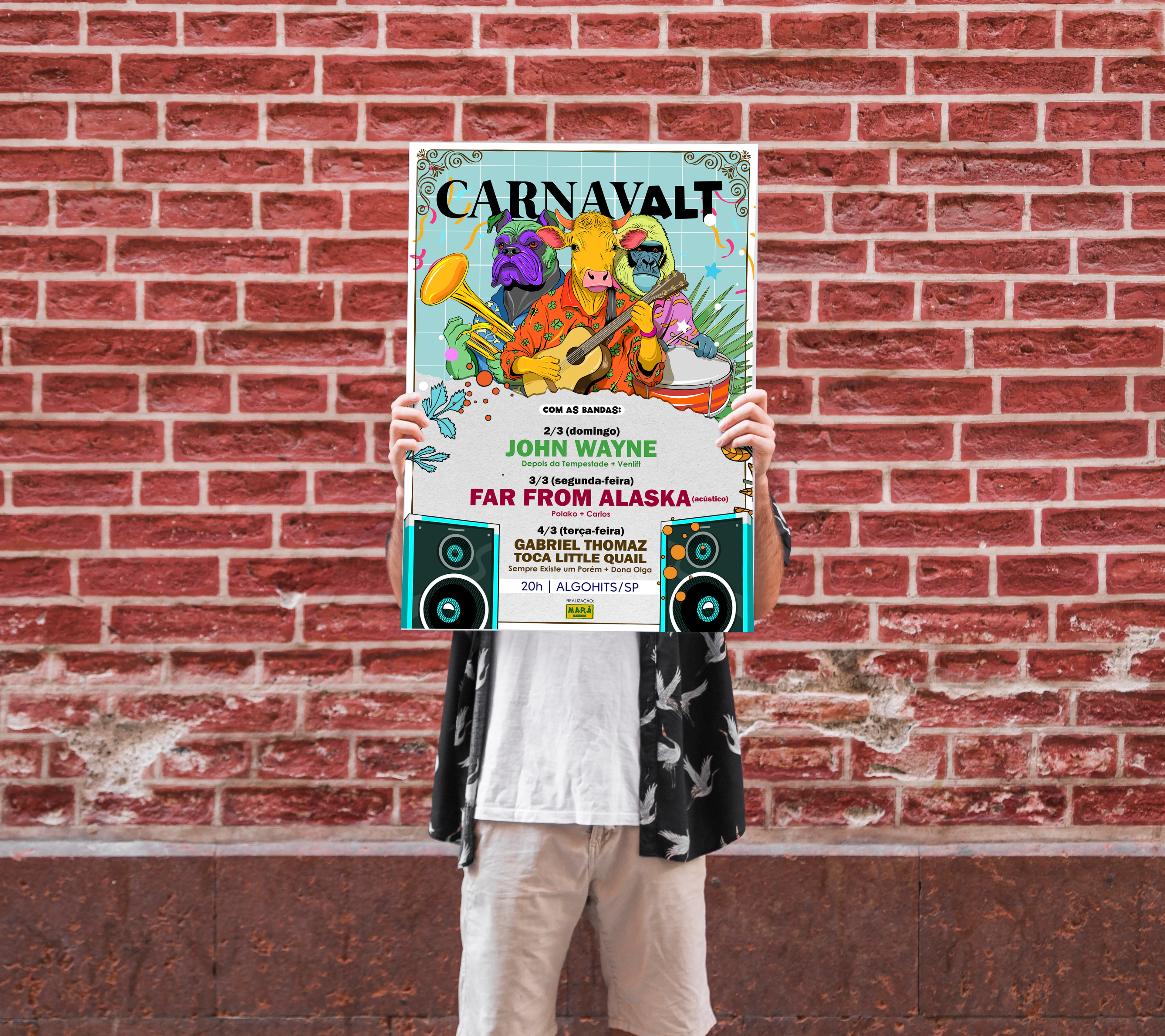 The illustrations and design developed for Carnavalt, held in São Paulo by the production company Marã Música, sought to convey the essence of an event that unites two intense cultural forces: Carnival and rock 'n' roll.