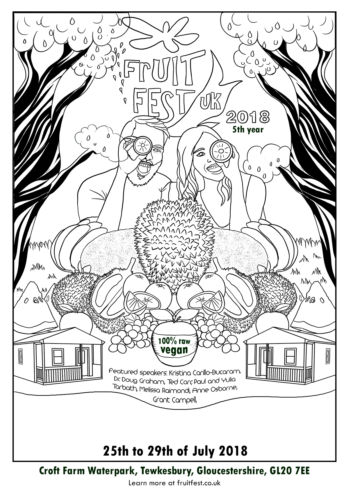 Poster and t-shirt creation for the UK Fruit Fest 2018, held in Tewkesbury, England. Event focused on vegan food in the UK.